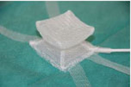 2 anterior: pre-pubic (one with catheter). - Silicon pad within the polypropylene bag, connected via the catheter to the suprapubic port for adjusting the pressure in the sub-urethral pad.